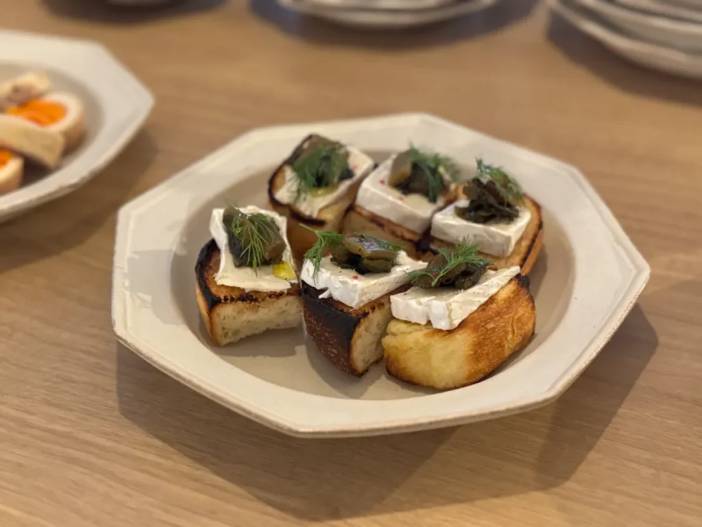 ● カマンベールチーズと野沢菜醤油漬けのブルスケッタ 塩麹パン