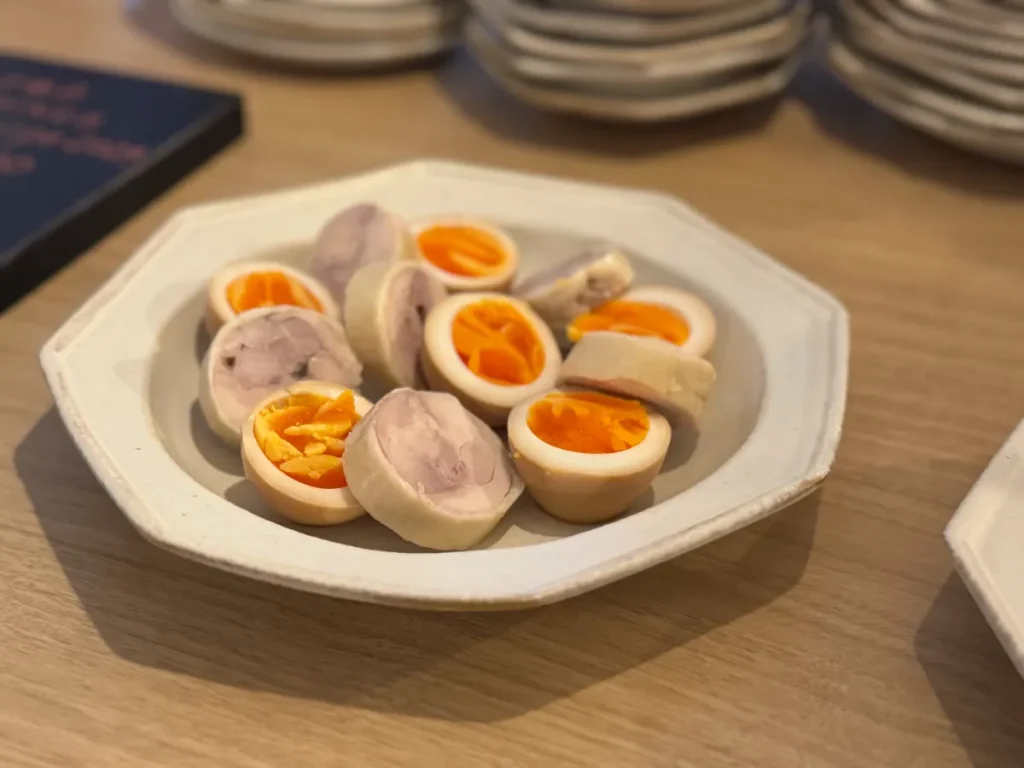 ●信州福味鶏モモ肉の塩麹ハムと酢卵